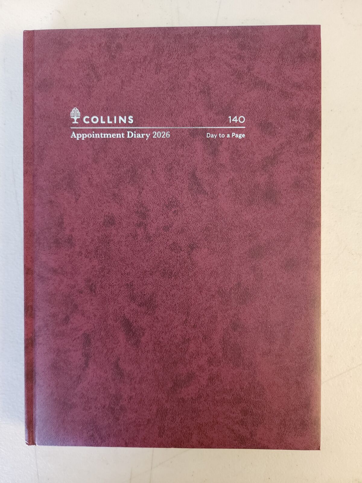 Appointment Diary 2026 140.P78-26 A4 Day 15 min 6am-8pm Day to page 1/4 hourly 10250553