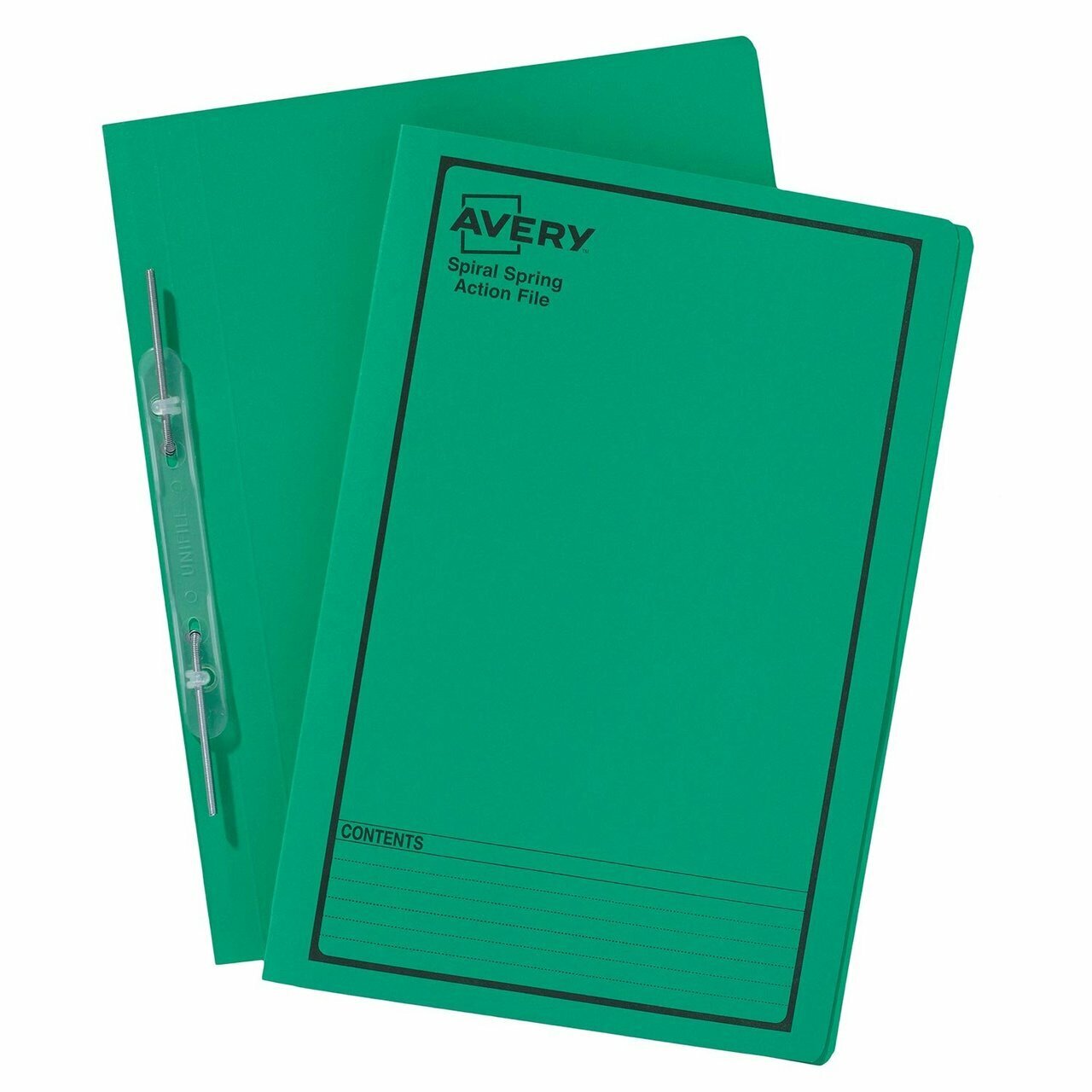 Spiral Spring Action File Avery Green box 25 85304 F/C Manilla with black printing
