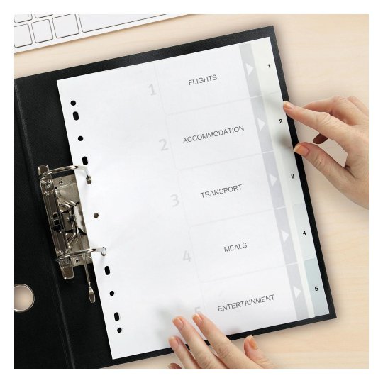 Each pack includes a set of A4, 1-5 numeric white dividers and contents sheet. With the multi-punched spine, these fit all standard files and binders.