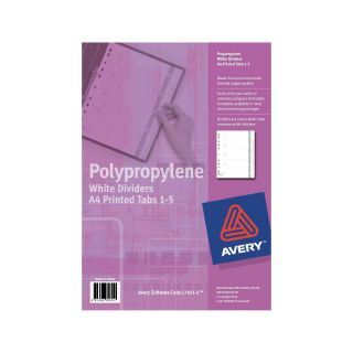 Avery Preprinted Dividers are the quick and easy way to organise your documents. The strong, durable white plastic dividers with preprinted 1-5 index tabs help you find information quickly. Together with the customisable table of contents sheet, an organised file can be created in no time at all.