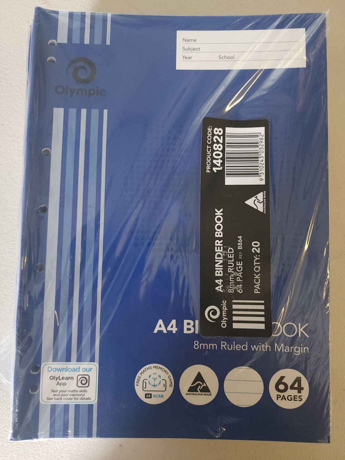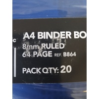 Binder Book A4 64 Page 8mm Ruled pack 20 140960 Tudor B864 #100697269