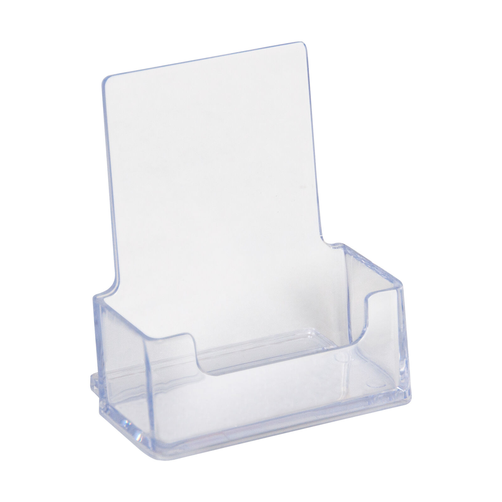 Display your business cards prominently using this clear portrait business card holder.