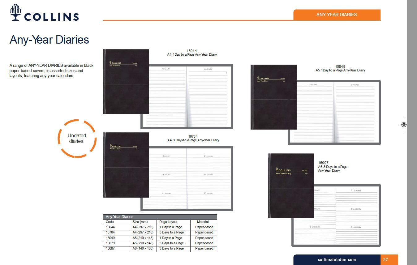 Diary Collins Any Year A4 1 day to page 146 15044 does not have times Undated 1dtp