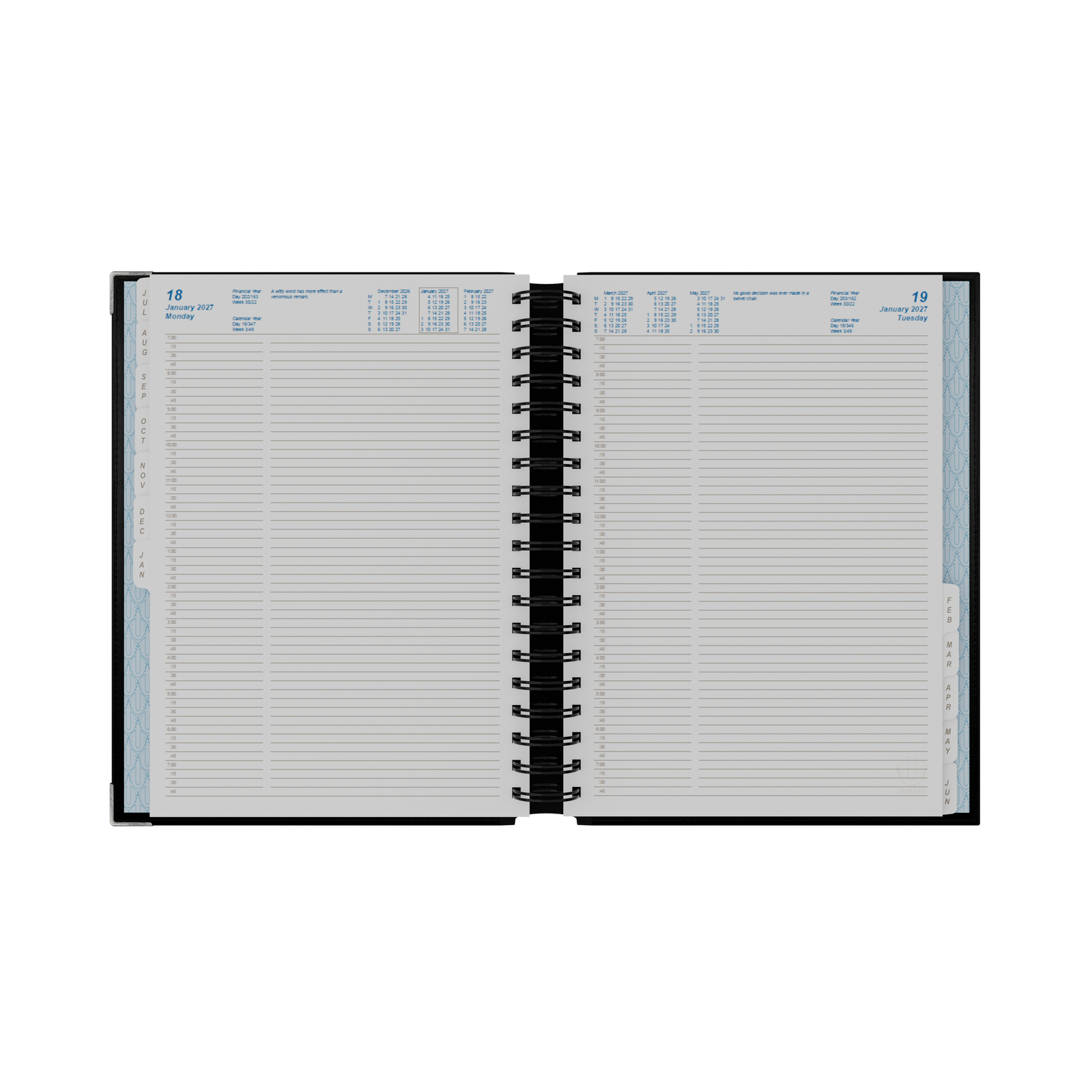 Diary FINANCIAL YEAR 26/27 Upward 8242 B5 1 day to a page Deluxe 250x176x35mm with index and Monthly planner Hard Cover Leather Bound
