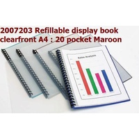 Display Book A4 20 Pocket Clear Front Refillable Maroon