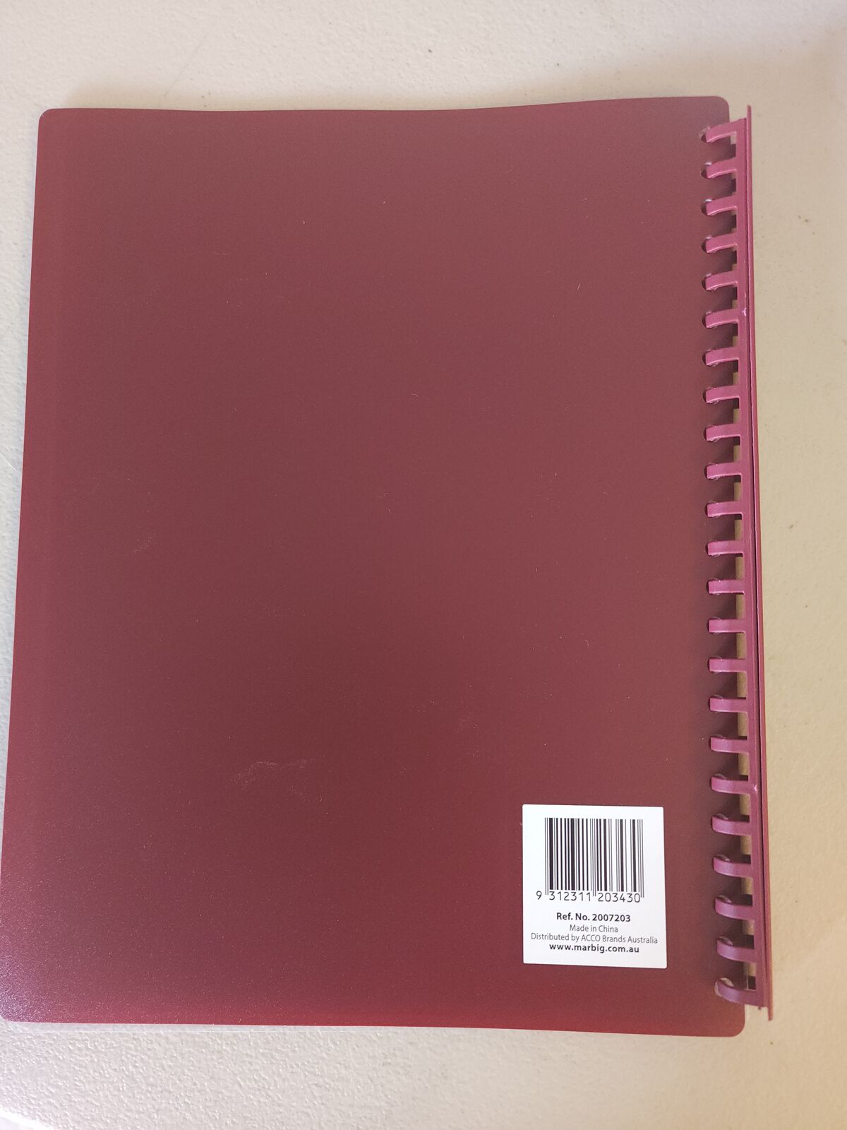 Display Book A4 Marbig 20 Pocket Clear Front Refillable 2007203 Maroon