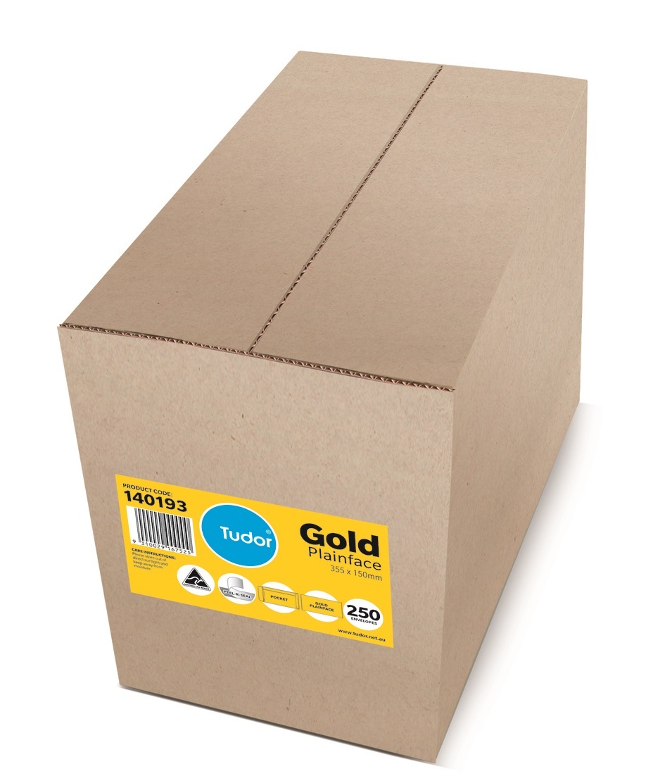 Envelope 355x150 Gold Peel and Seal box 250 Tudor 140193 Pocket Opens short side #142895