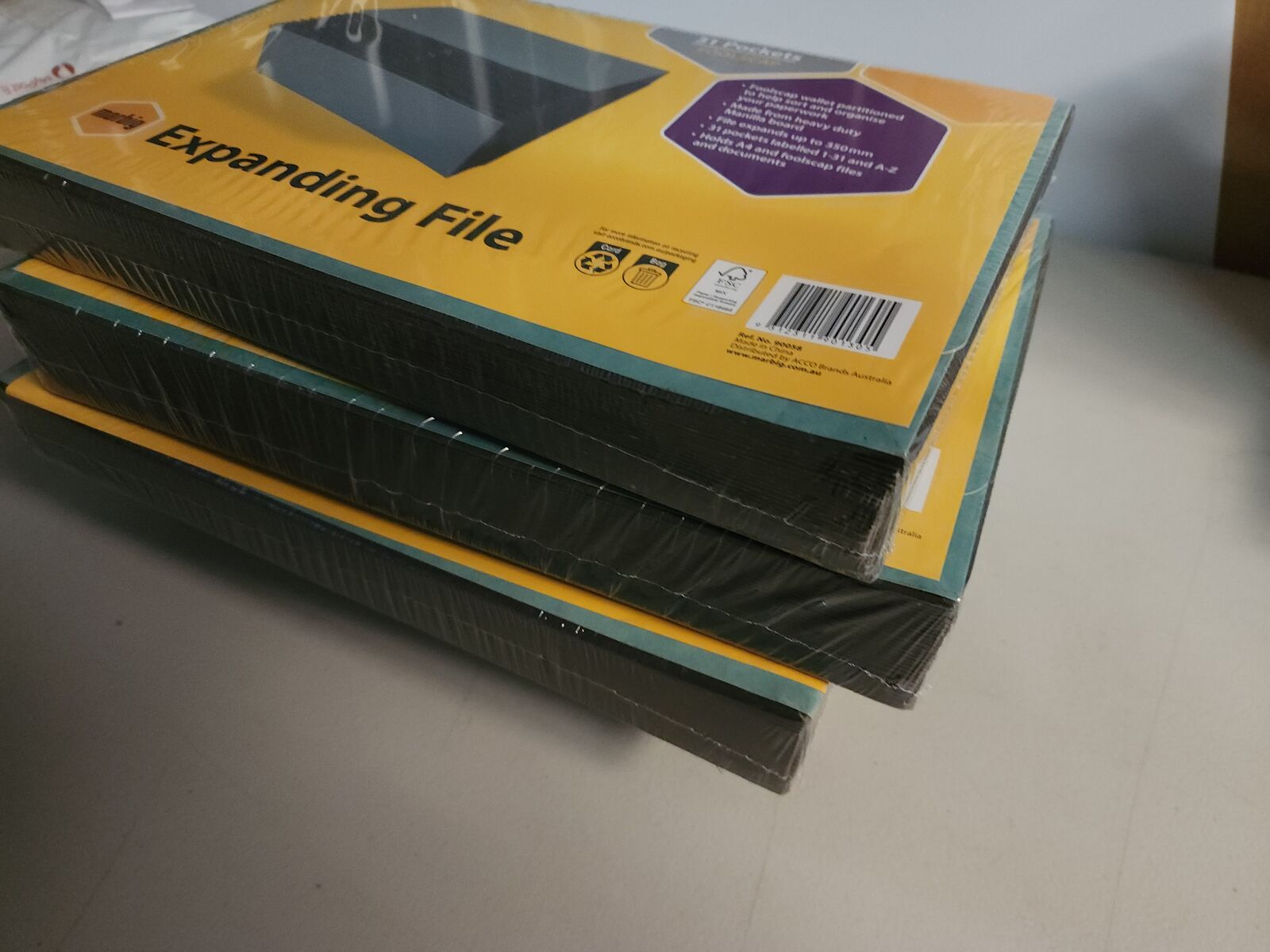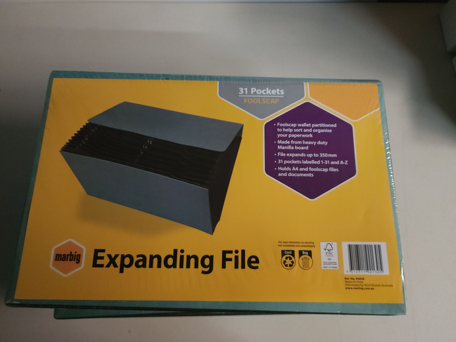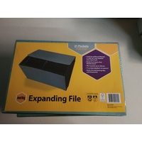 10402122 concertina files folders Expanding File Marbig® Expanding File Manilla 31 Pocket 31 Pockets labelled 1-31 and A-Z. 1-31 pockets can be used for each day of the month to sort relevant papers. Designed to hold FC size documents. File expands up to 350mm. Made from heavy duty manilla board. 90058 Marbig® Expanding File Manilla 31 Pocket FC Green