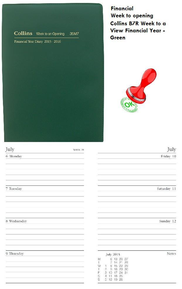 DIARY FINANCIAL YEAR B7R 26/27 35M7.V40-2627 Week To An Opening Green Collins stock due march