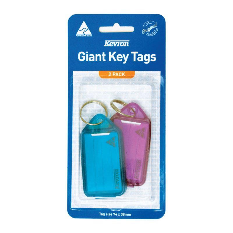 ID30 Tag size 74 x 38mm - Insert size 50 x 31mm - Ring size 25mm ID30 GIANT CLICKTAGS Easy-opening keytags with paper insert. Key Tag Kevron Giant Pack 2 ID30PP2 9314221000215 60152891