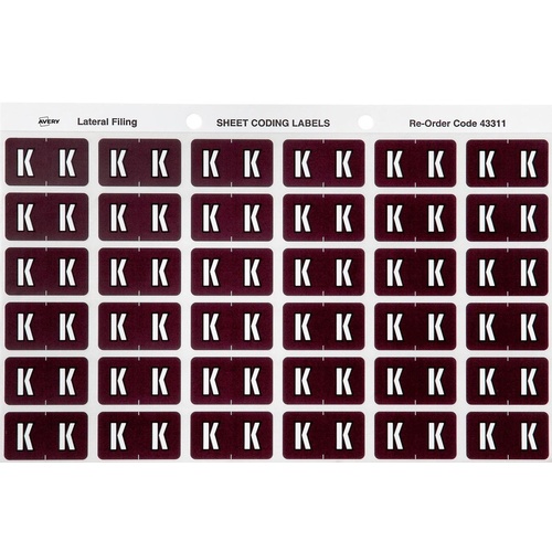 Labels Side Tab Letter K box 180 Avery 43311 25x38mm Colour Coding