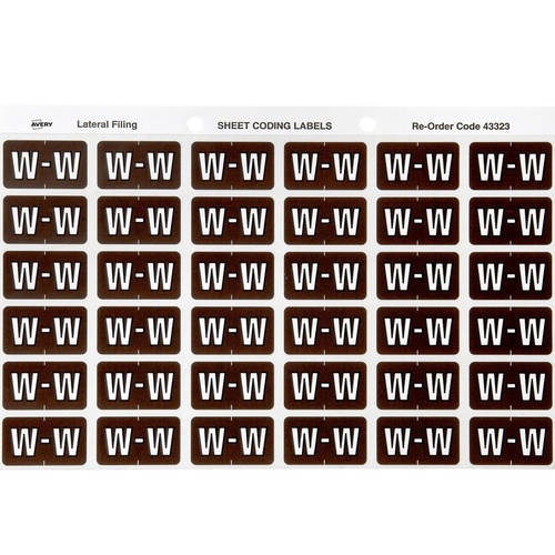 Labels Side Tab Letter W box 180 Avery 43323 25x38mm Brown Colour Coding