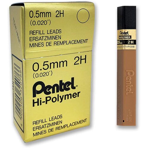 Pencil Leads Pentel 0.5mm 2H Box 12 Tubes 100C Hi Polymer