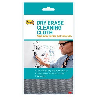 Wipe away marker dust with ease using the Post-it Dry Erase Cleaning Cloth. The Post-it® Dry Erase Cleaning Cloth lifts & traps marker dust, is washable, and no sprays or chemicals are needed.