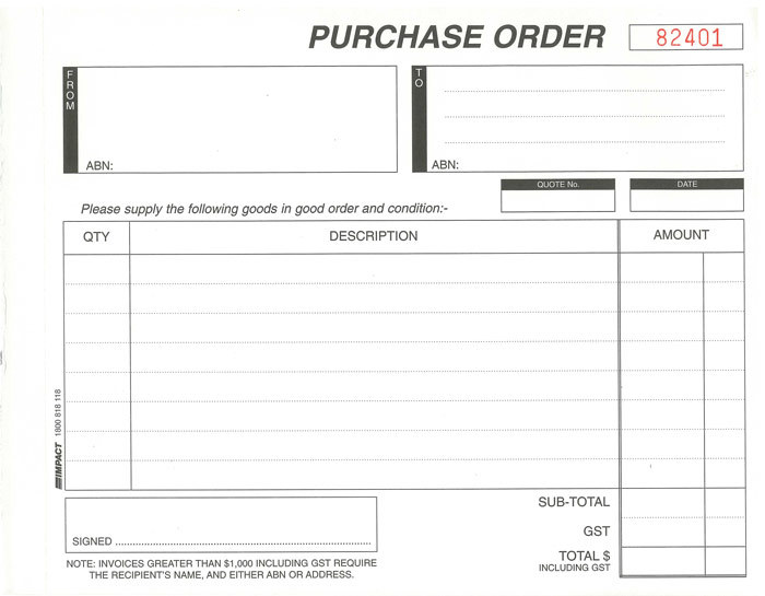 10150463 Purchase Order Book A5 Triplicate Impact CS480 - CLICK IMAGES TO SEE INSIDE** please click on the blue image to view what the inside of the book looks lke 50 TRIPLICATE SETS -