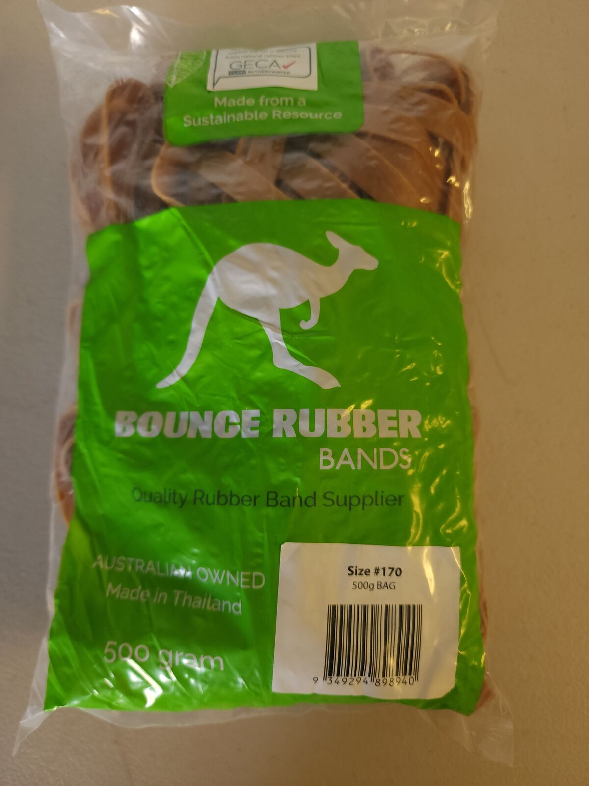 Rubber Bands #170 bag 500gram (often measuring around 160mm in length by 12mm wide)