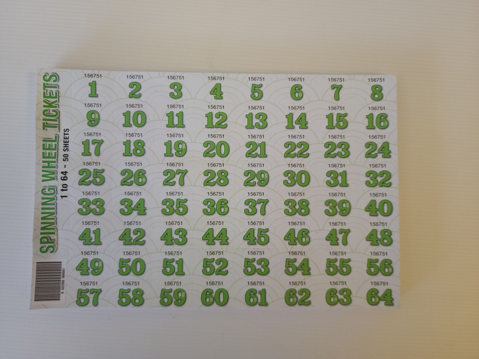 Spinning Wheel Raffle Ticket Pad 50 Sheets Numbered 1 to 64 CHOCOLATE wheel CW64