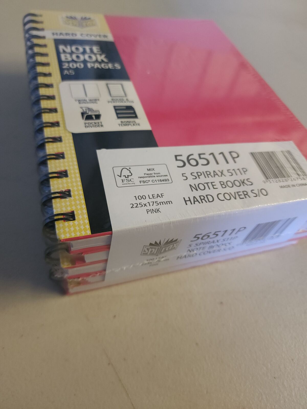 Notebook 225x175mm Hardcover 100 Leaf Pink Pack 5 Spirax 511