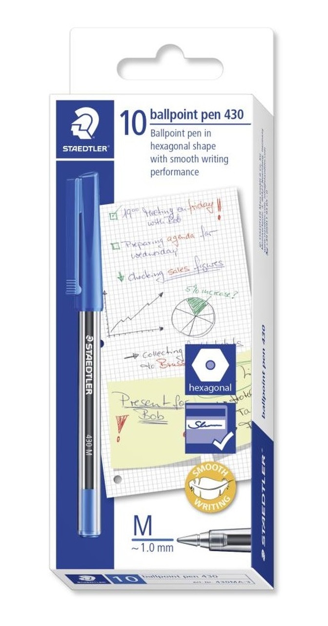 Pens Staedtler 430 stick Med Blue Box 10 1.0mm Medium