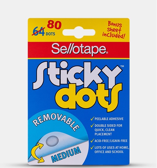Sticky Dots 10mm Double sided adhesive Removable 64 Dots Sellotape 990001 - pack 64