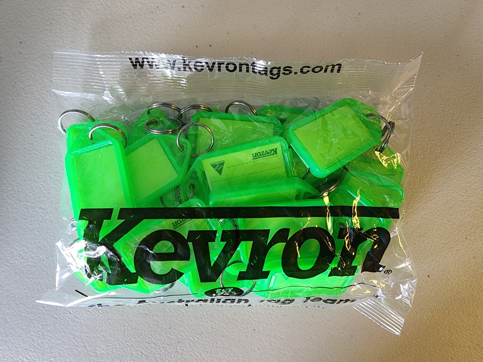 Key Tag Kevron Giant Fluoro Green Bag of 25